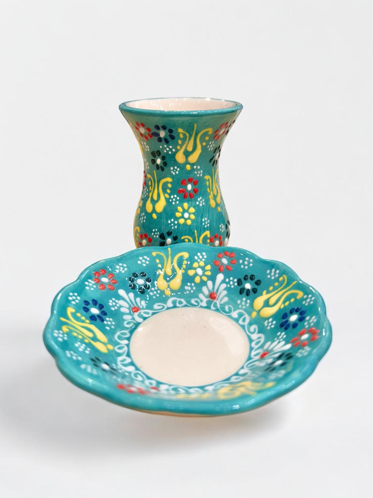 This individual cup set is expertly crafted by skilled artisans in Turkey using traditional techniques. Its unique design adds an elegant touch to your home, making it a perfect decorative piece.